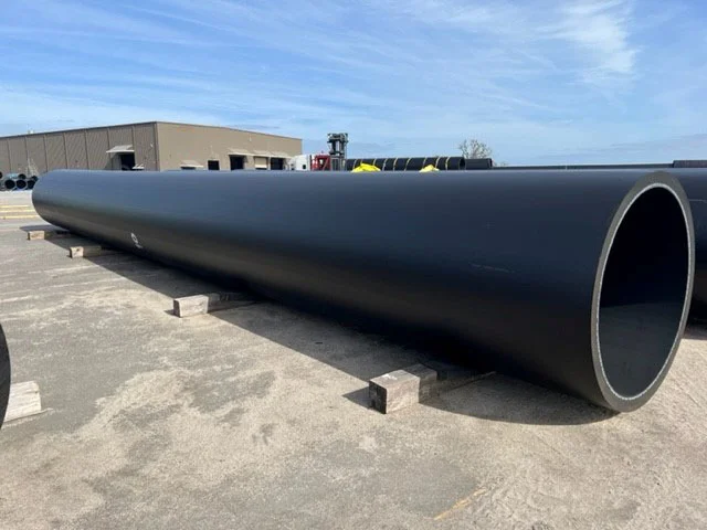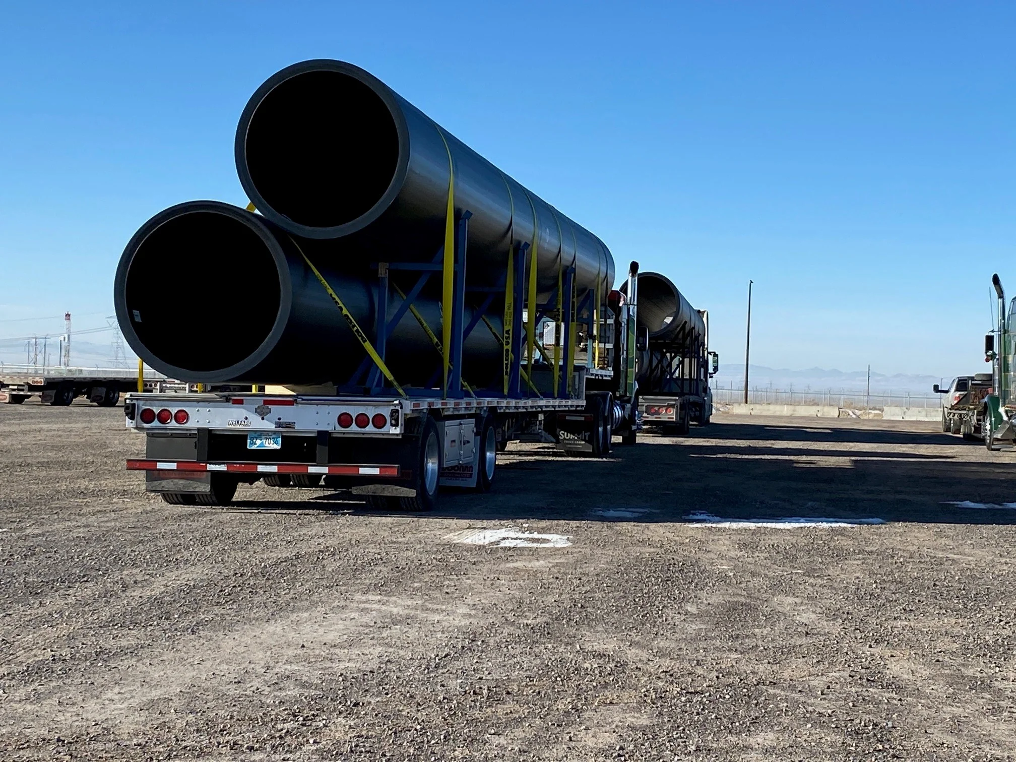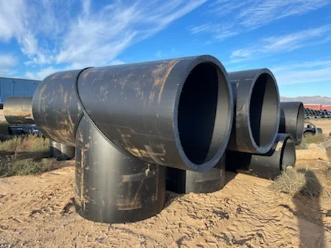Notably, the fabrication of specialized HDPE fittings ranging from 24” to 63”, with the largest fittings requiring 63” DR13.5 feedstock to match the pressure rating of the 63” DR17 pipe, exemplifies ISCO’s commitment to craftsmanship and adaptability. Close collaboration with pipe manufacturers and utilization of many of ISCO’s fabrication facilities, including Corsicana, Texas and Kingman, Arizona for production of the large diameter heavy wall fabricated fittings. The project presented some tight delivery requirements, but ISCO was able to prioritize fittings and use multiple facilities to match those requirements.