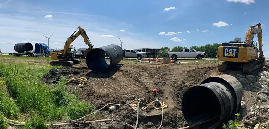 Read about the remarkable engineering feat of replacing a 280-foot segment within a 144” culvert crossing beneath busy Interstate 65 in Indiana. This project seamlessly installed 120” Spirolite High-Density Polyethylene (HDPE) pipe, upholding uninterrupted traffic flow. With ingenious “Bell and Spigot” connections, the lightweight Spirolite pipes were efficiently assembled and pushed into the existing culvert. The project’s success not only reflects the innovation of HDPE profile wall technology but also demonstrates its pivotal role in safeguarding local streams crucial to the farming community and the surrounding ecosystem. The installation, completed in under two days, stands as a testament to engineering excellence and proactive environmental stewardship.