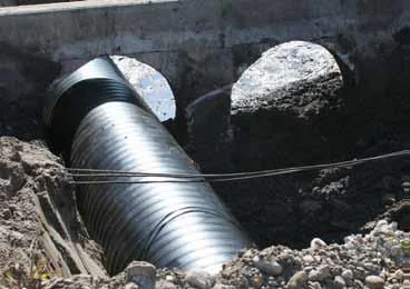 There were also two 48-inch CMP culverts that had partially collapsed. Kerr and Waters discussed and investigated additional options for a repair or replacement at this site. For the 48-inch CMPs Waters decided to use another type of HDPE pipe, in this case closed profile HDPE pipe (made with Profile Pipe Technologies, PPT, equipment). The profile pipe was joined using a bell and spigot method.