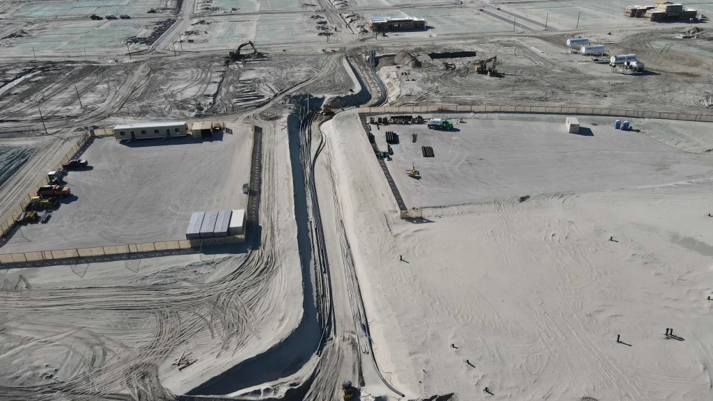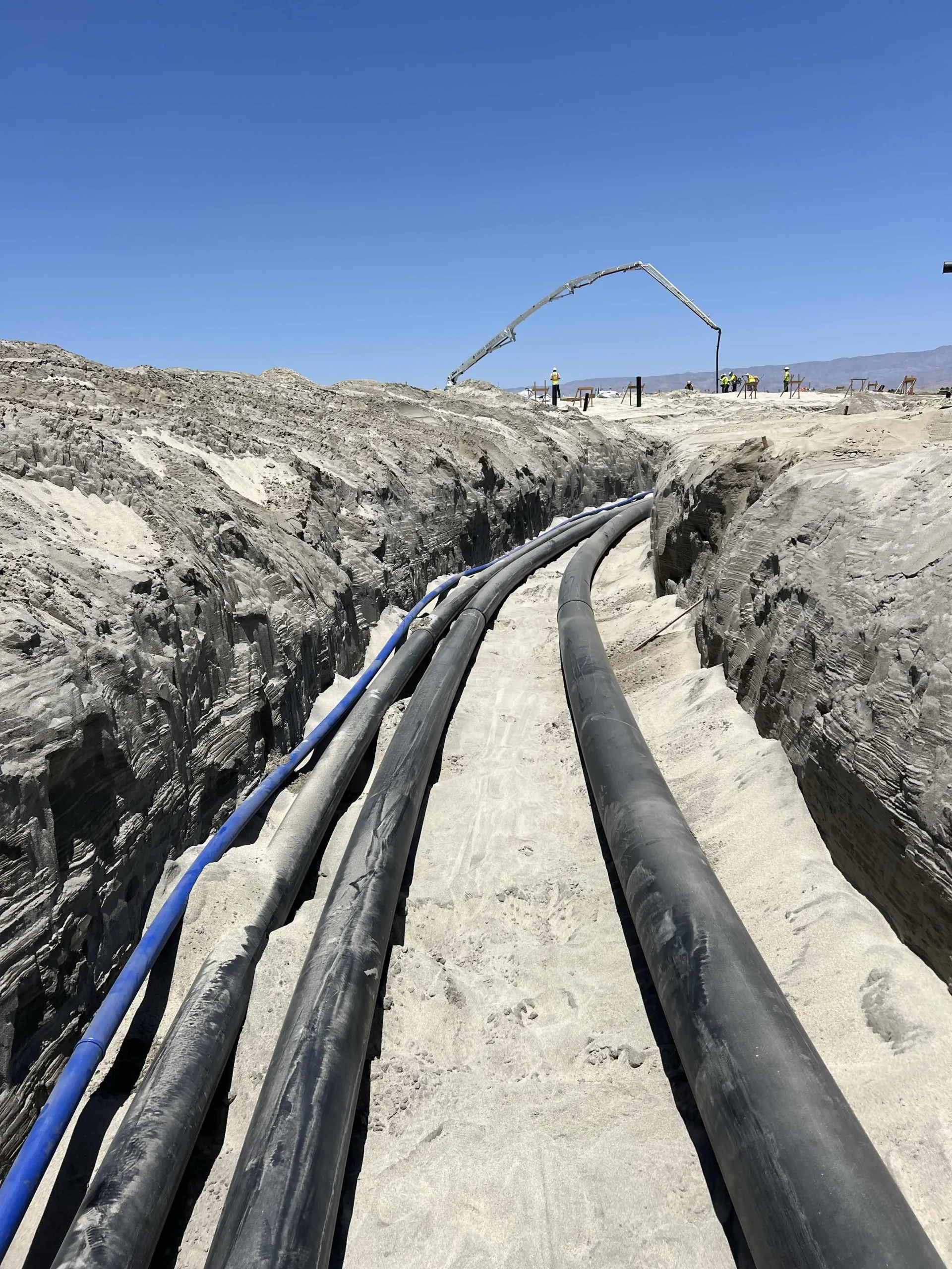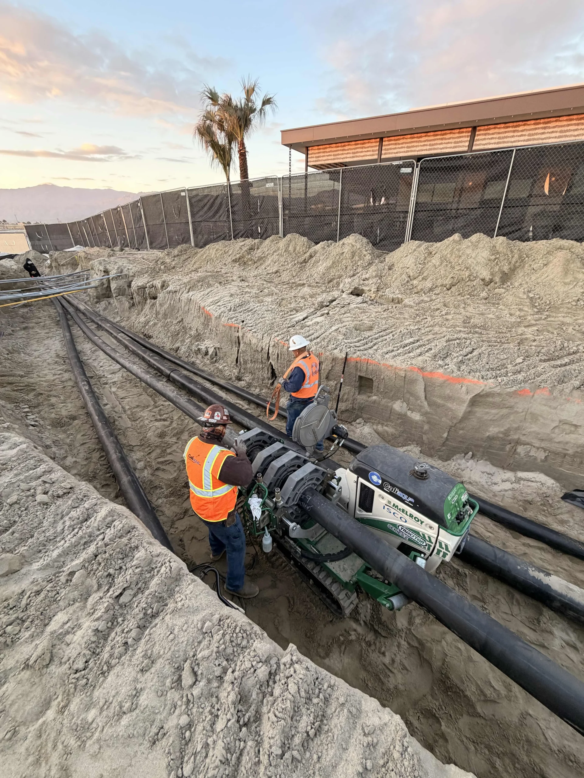 The HDPE installation required precise routing and depth control. Caliagua coordinated daily with other contractors and utility providers to avoid conflicts with domestic water, sewer, storm drains, and dry utilities serving the surrounding homes and commercial improvements, ensuring uninterrupted progress and compliance with the overall site development plan.