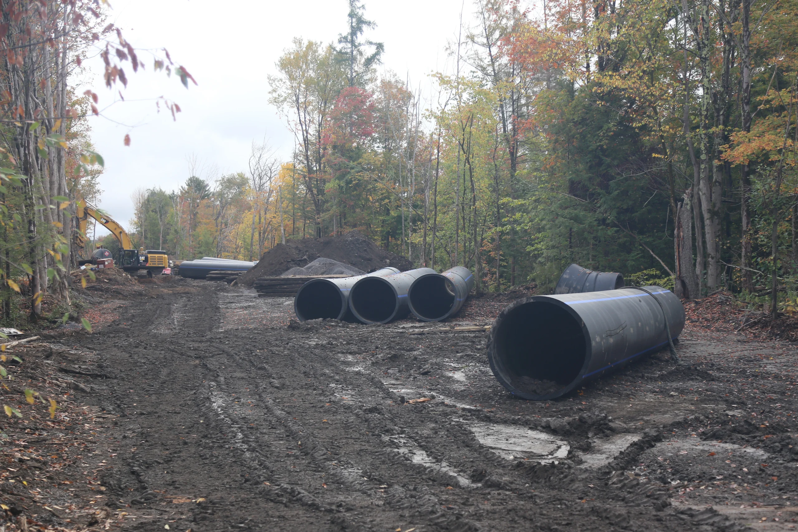 Next came crossing a tributary that flowed into West Canada Creek.  To prevent water from displacing the installed pipe or the natural course of the feeder stream being altered, it was time for Hylton to dig into his bag of tricks.
