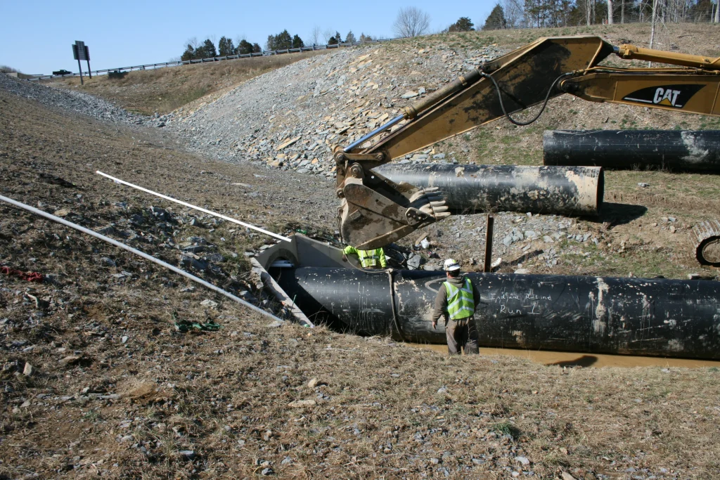 Harrington also provided a direct-bury load analysis on Snap-Tite HDPE Pipe since the RCP was in such poor condition.  The analysis showed that with proper grouting and installation, Snap-Tite would exceed their expectations of having the pipe close to 50 feet beneath the road.